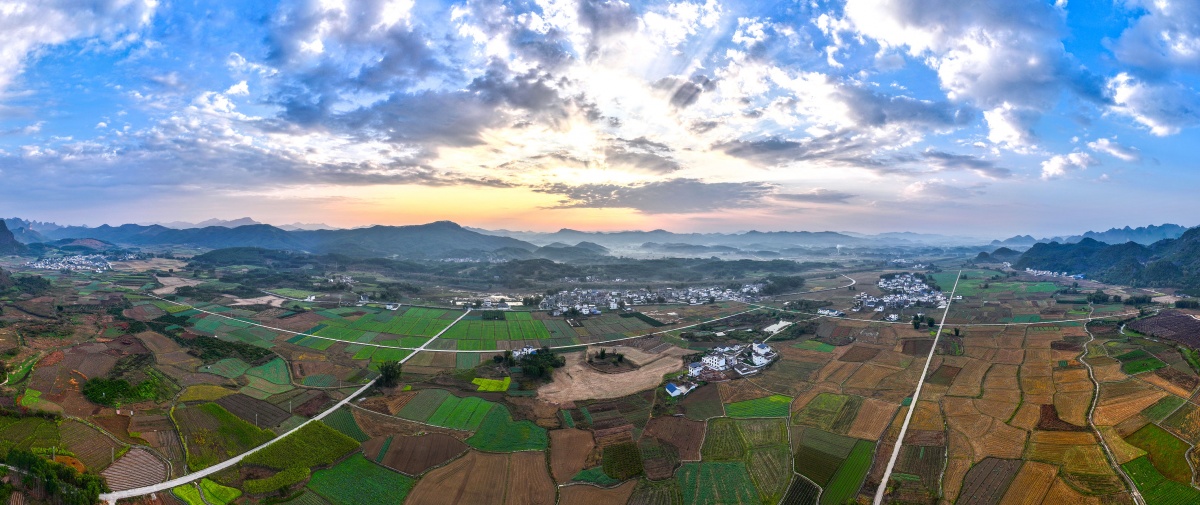 12月30日,拍照的鹿寨县中渡镇马安村高椅屯通过土地归纳整治后建成的高标准农田和村庄