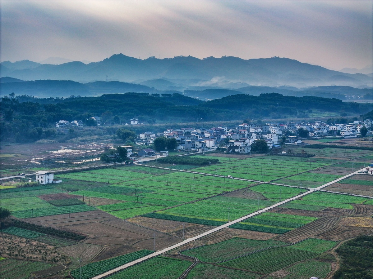 仲冬时节,在柳州市鹿寨县中渡镇马安村,高标准农田里绿莹莹的冬天蔬菜长势喜人,一条条机耕路犬牙交错,一道道灌溉渠贯穿田间,群山环抱、农田绵绵的美景令人陶醉。